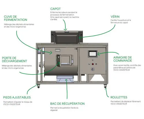 Akadis propose un Bio-digesteur pouvant traiter jusqu'à 2 tonnes de déchets par jour.